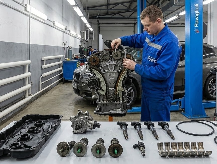 | BMW 3 серия (E90/F30) | N46, N52, N54, N55, N13, N20 | Цепь ГРМ/насос (N20), DISA/КВКГ (N52), ТНВД/форсунки/турбо (N54/N55/N13). | Превентивная замена цепей (N20), замена шатунных вкладышей (N54), ремонт Вальветроника (N55), Walnut Blasting впуска. |